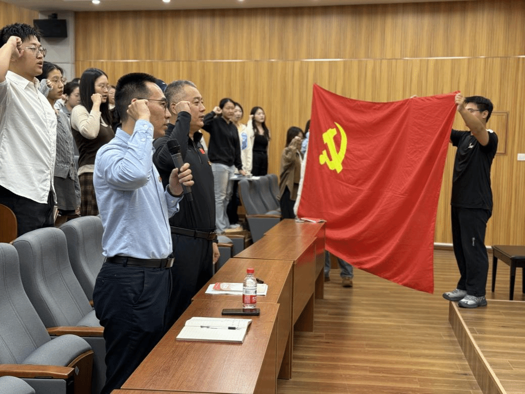 在学院党委书记冷再心同志领誓下,全体党员面向党旗,庄严宣誓。与会党员通过重温入党誓词,进一步牢记党的宗旨和纪律要求,强化政治忠诚、锤炼党性修养,凝聚起踔厉奋发、勇毅前行的思想共识与行动力量。