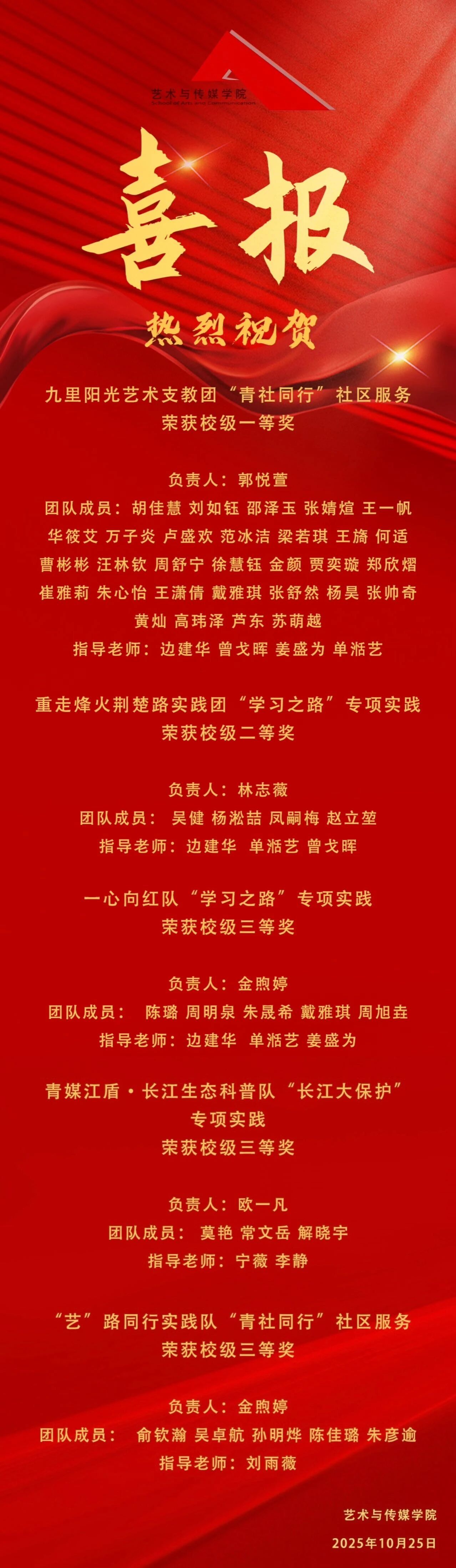 喜报 | 热烈祝贺艺术与传媒学院在2025年暑期社会实践校级答辩中斩获佳绩!