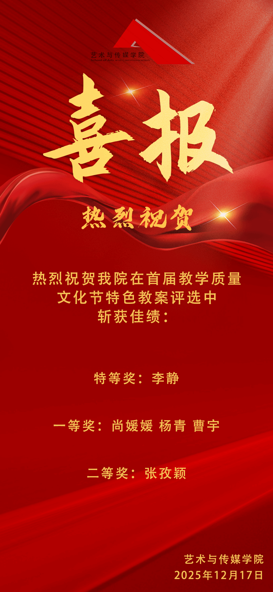 喜报 | 热烈祝贺艺术与传媒学院在首届教学质量文化节特色教案评选中斩获佳绩!