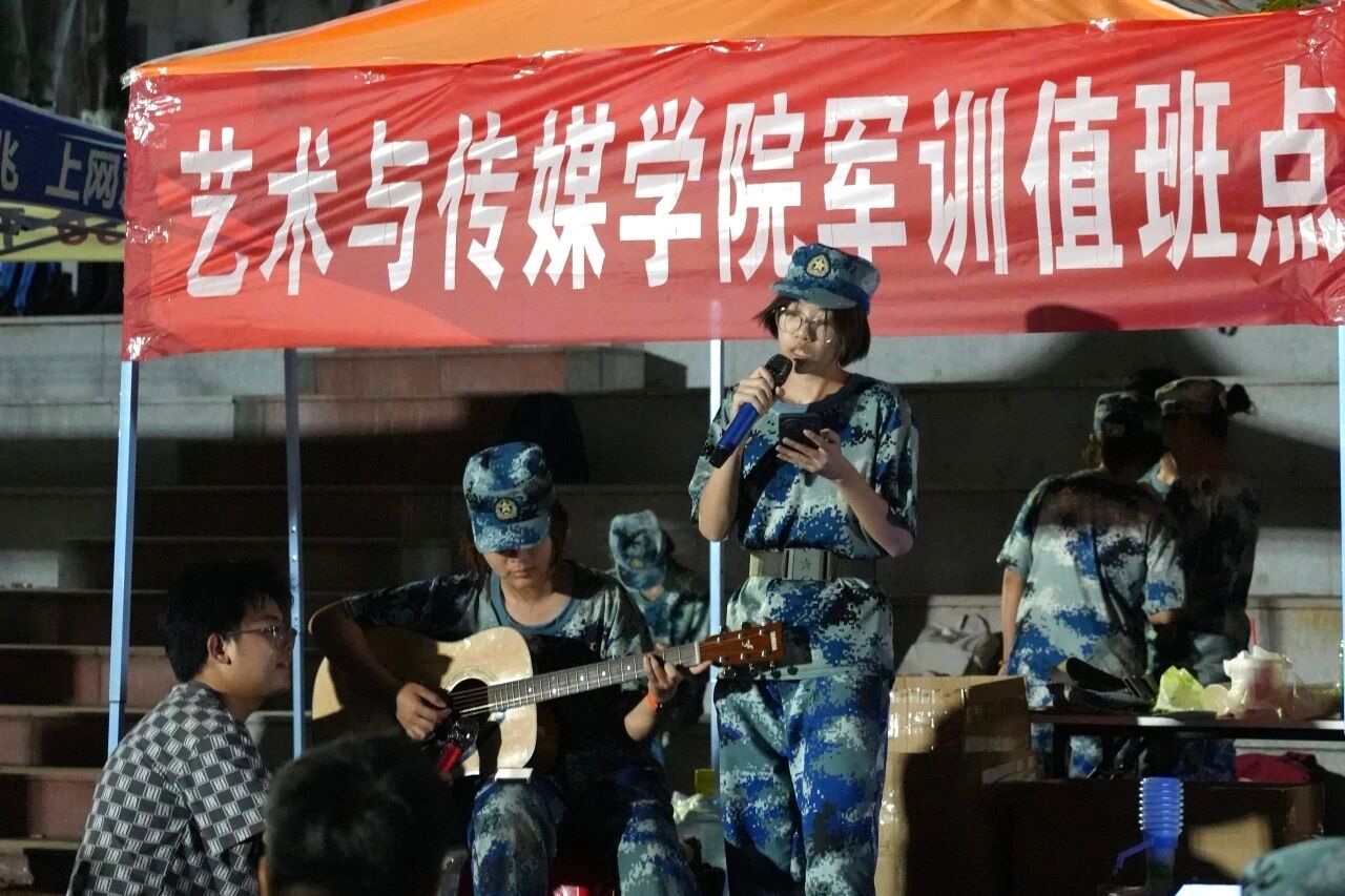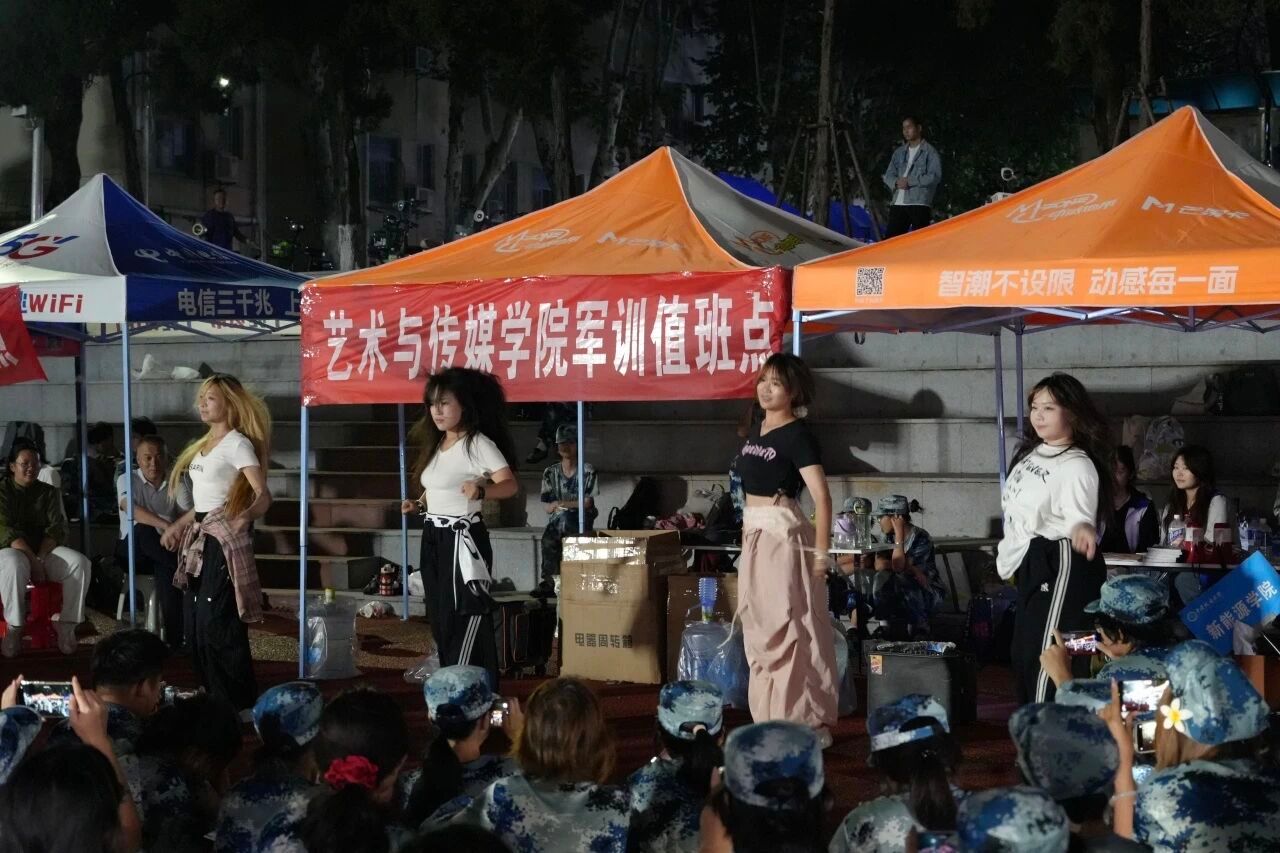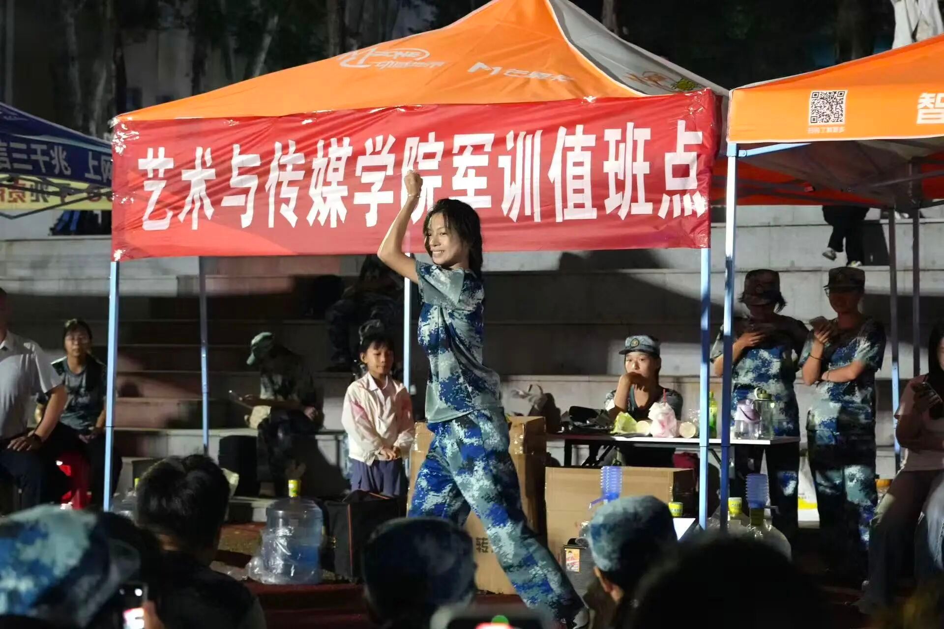 夜幕降临,训练场的余温尚未散尽。在各方支持组织下,艺术与传媒学院与新能源学院方阵联谊举办了精彩绝伦的文艺表演,他们用歌声传递热忱,用舞蹈绽放青春,让寂静的夜晚变成了充满欢声笑语的青春舞台。