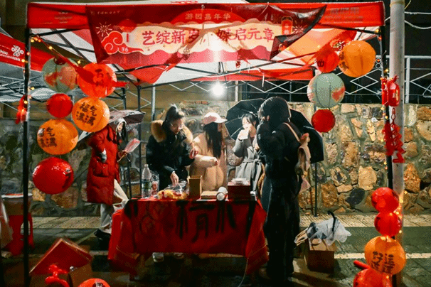 “艺绽新岁,媒启元章”“时光留影”等艺术与传媒学院负责的主题摊位筹备了各类跨年装饰道具,为师生提供合影留念与即时打印服务,覆膜封装的照片让师生们的跨年美好瞬间得以留存;游戏互动摊位设置了趣味项目,师生们积极参与、友好比拼,在活动中放松身心,成功闯关者获得定制礼品。