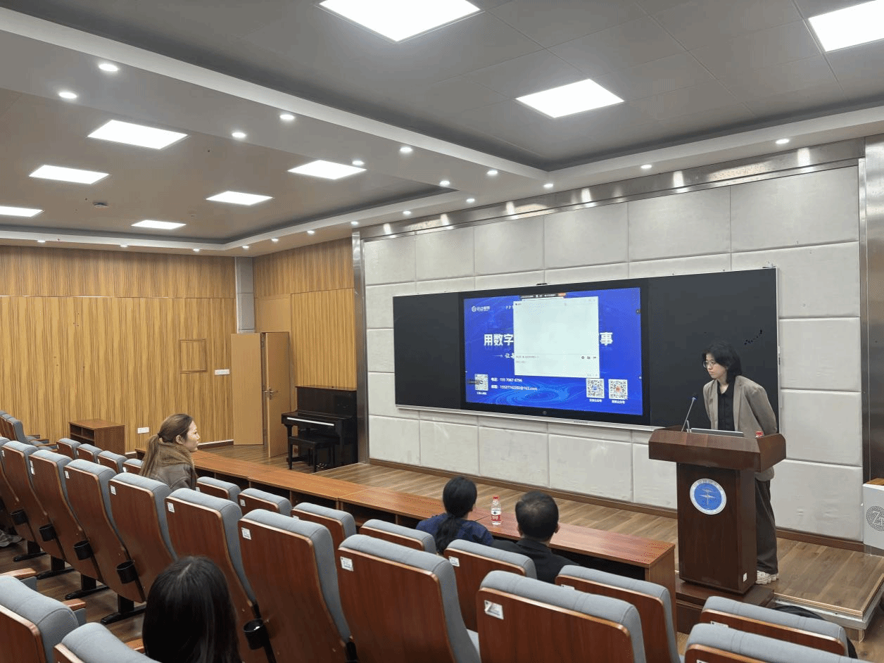 启点视界(武汉)科技创新服务有限公司程经理在本次宣讲中强调了科研可视化的核心价值——以受众为中心的逻辑梳理与数据呈现,并且跟同学们分享了当前学术成果转化中存在的信息传递壁垒。她提到团队通过视觉化语言帮助科研人员向投资人、企业及评审委员会清晰传递研究成果,暗示了当前传统学术表达方式在跨领域传播中的局限性。同时,介绍了奇点世界的跨学科团队和全链条服务体系,服务对象涵盖高校、医疗机构等多类客户,突出公司在科研可视化领域的专业性和资源整合能力。